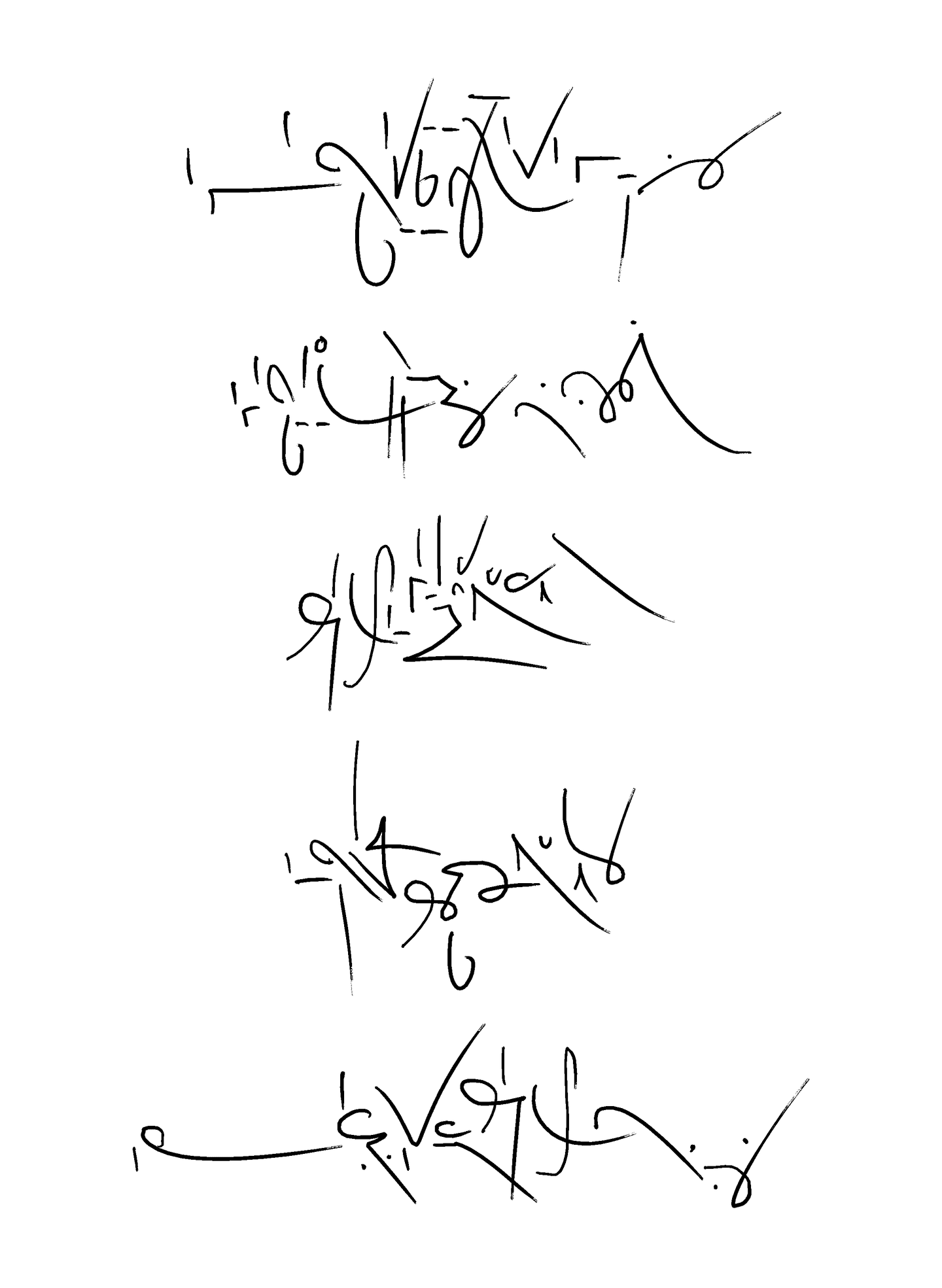Also, from what I understand, traditional shorthand systems require a fine degree of motor control: when writing a line, you might need to keep in mind its length, direction, curvature, and sometimes even width, all while writing at a rapid pace. This seems like a lot to manage, so I designed this system to only distinguish between three types of lines. Once you start writing a line, all you have to care about is the general direction it’s going: you don’t have to consider length and curvature at all, unless you’re using these features expressively.