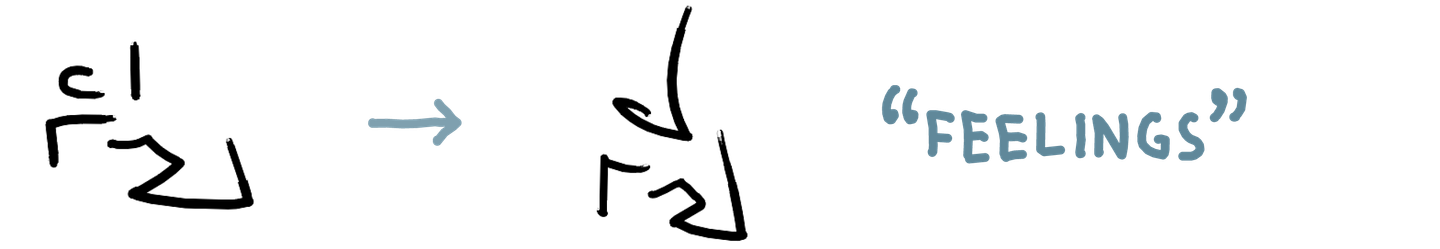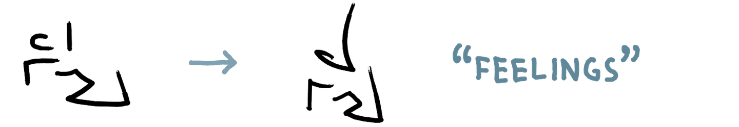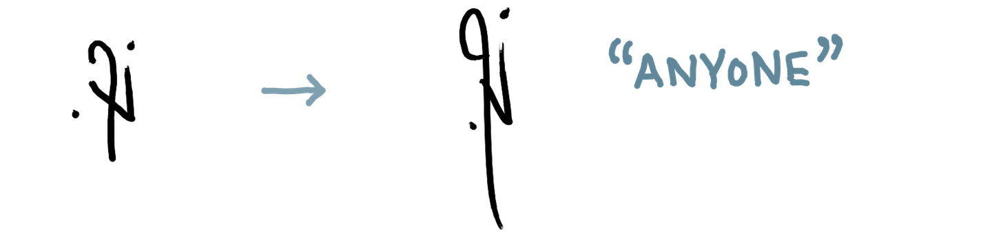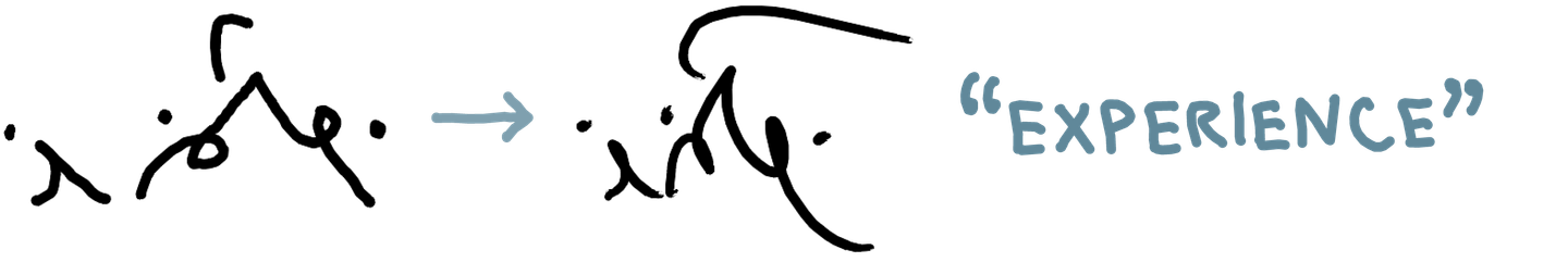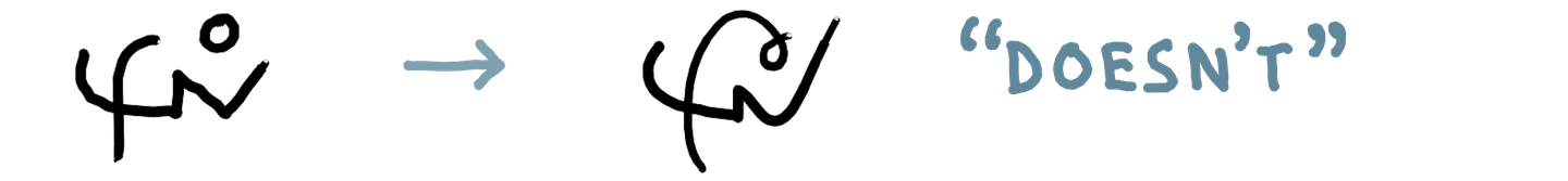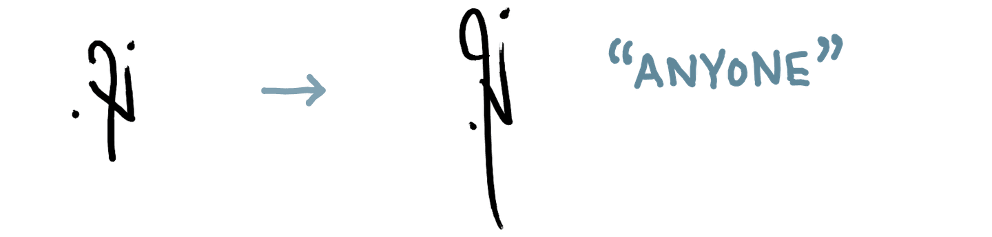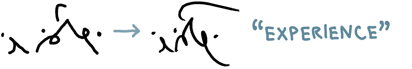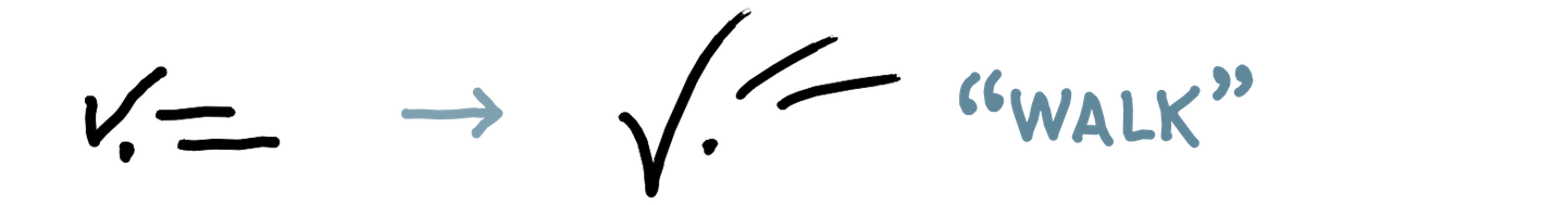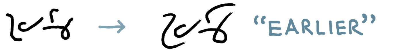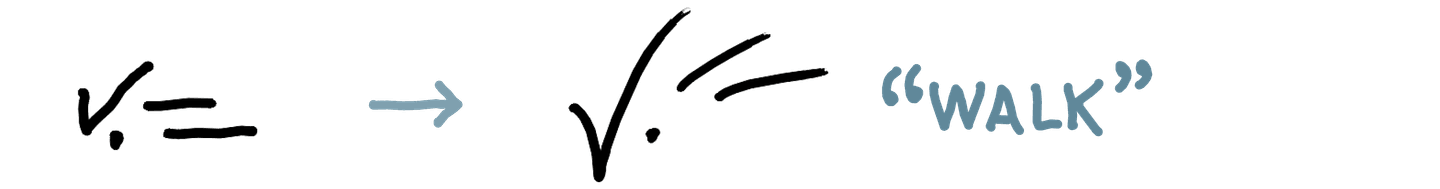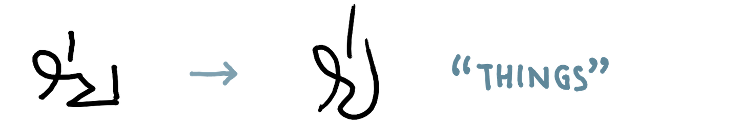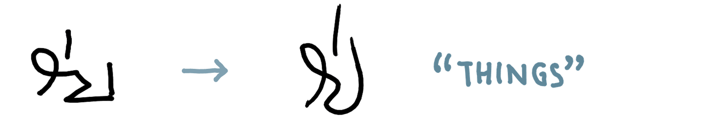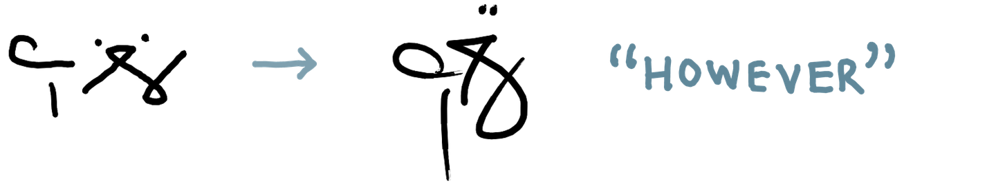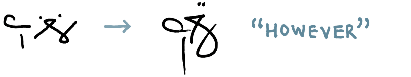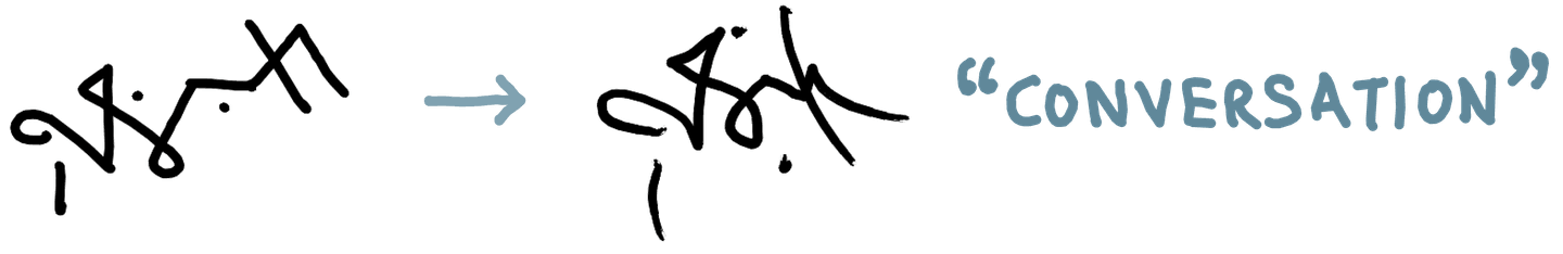 As I’ve gotten more comfortable reading and writing in this system quickly, the shapes have changed and become more fluid, sometimes to the extent that a literal reading of the shapes would give the wrong text. The overall shape starts to matter more than the individual parts for my ability to read a word.