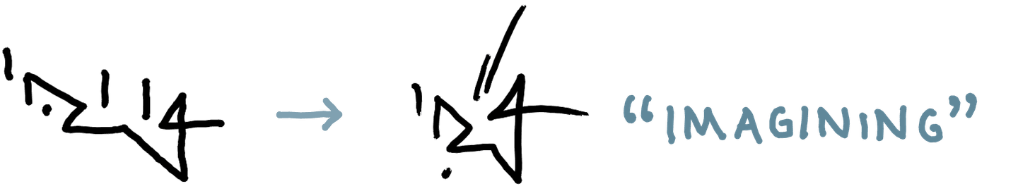 (Reading this literally, both of the i’s are above the g, so this says imagiinng. However, I would never read it that way: in a word that actually has two i’s in a row, like skiing, they would be written as a ligature, and so the fact that they are not in a ligature here means they must be part of separate syllables, regardless of where they’re written.)